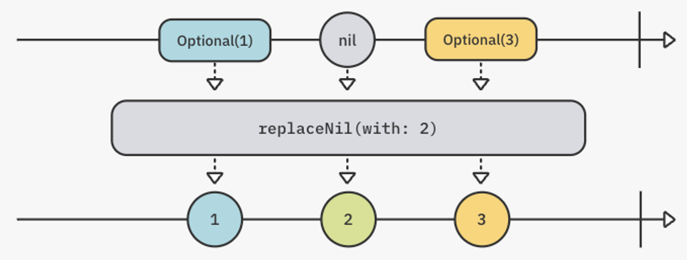 optional 이벤트에 대해 값이 있다면 일반 값을, nil이라면 대체값을 방출함