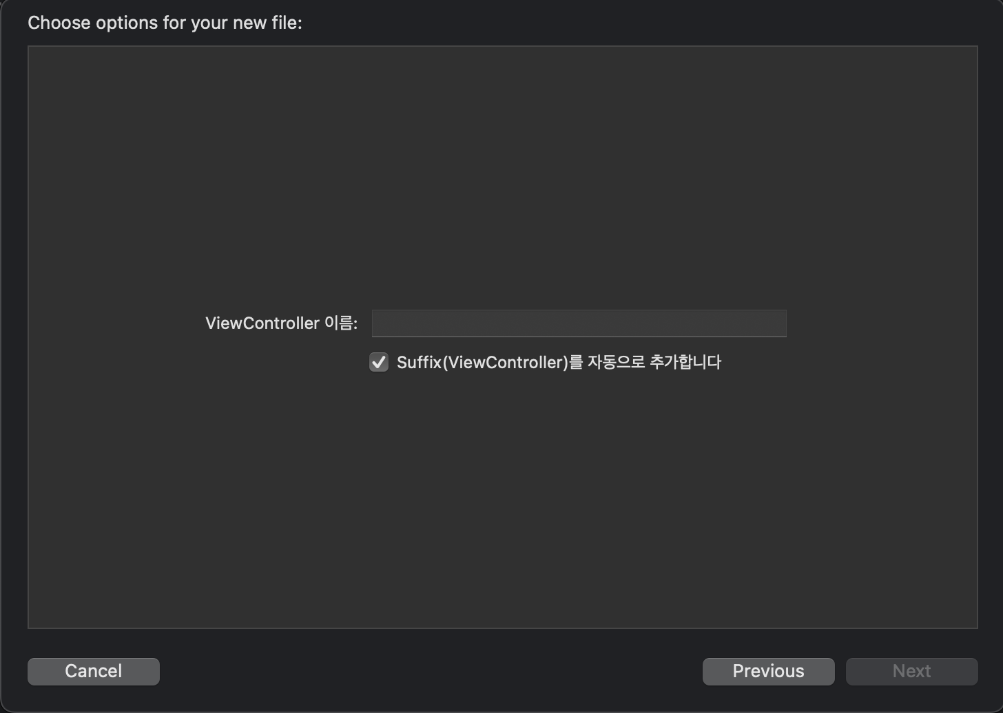 그래서 Suffix폴더의 파일은 `___FILEBASENAME___ViewController.swift`로 `ViewController` suffix를 붙여놓았고, 해당 체크박스를 선택하게 되면 suffix가 자동으로 붙을 수 있도록 커스터마이징 해둔 것이다!