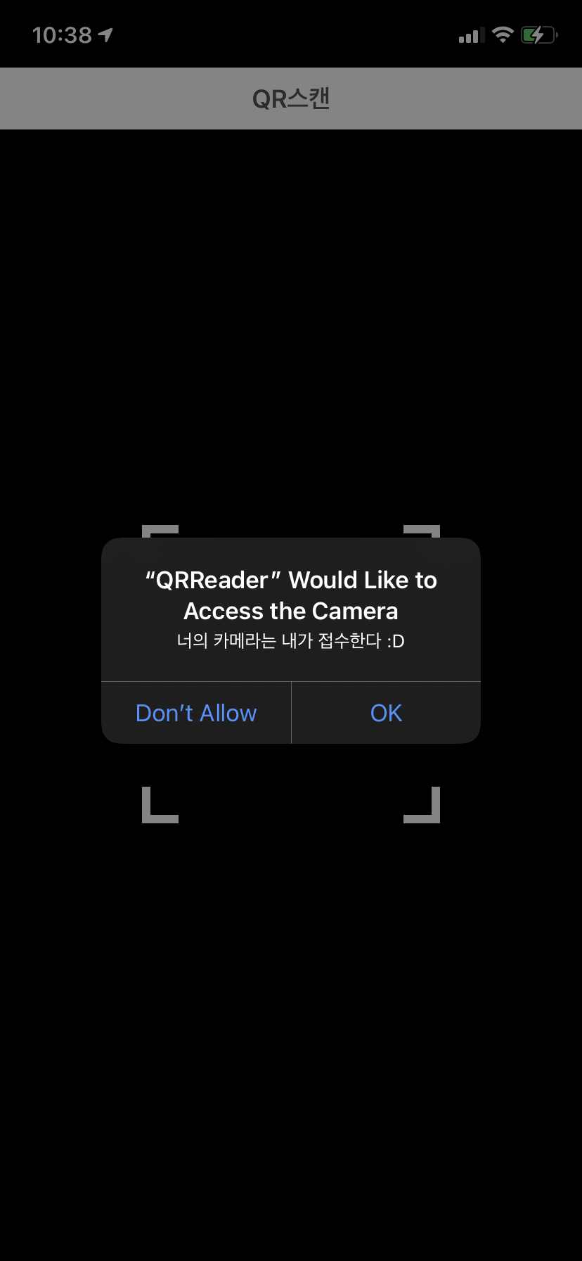 단 여기서 QRCode를 읽을 부분은 dimmed 처리가 되어 있으면 안 된다.